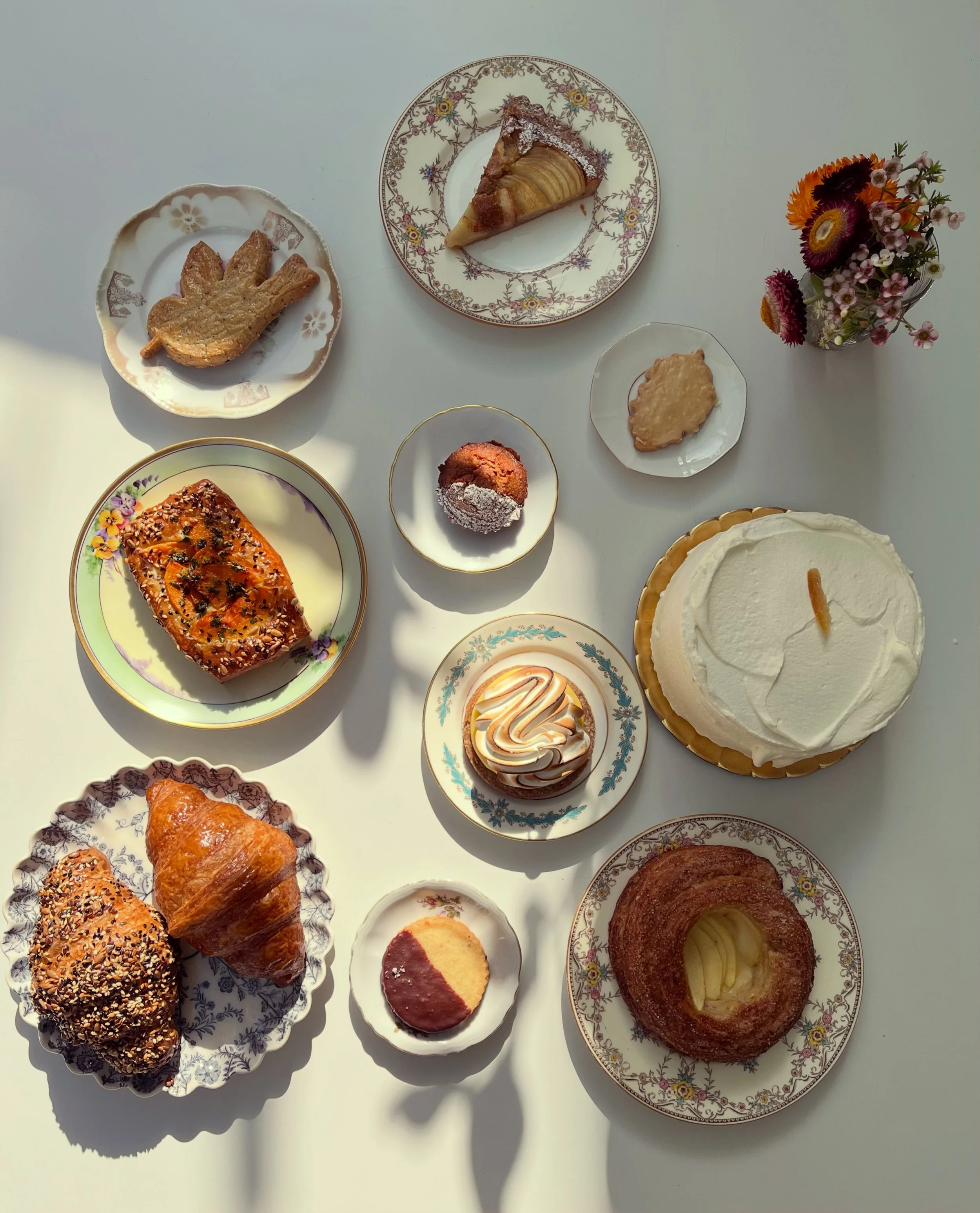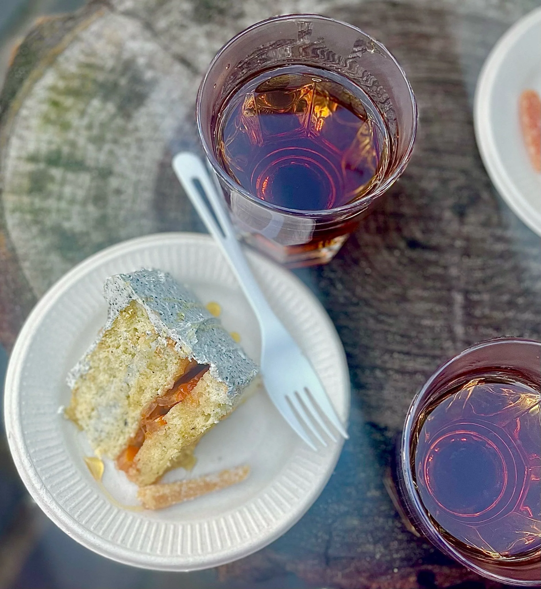 sesame chiffon cake with blood orange marmalade, sesame pastry cream and black sesame buttercream