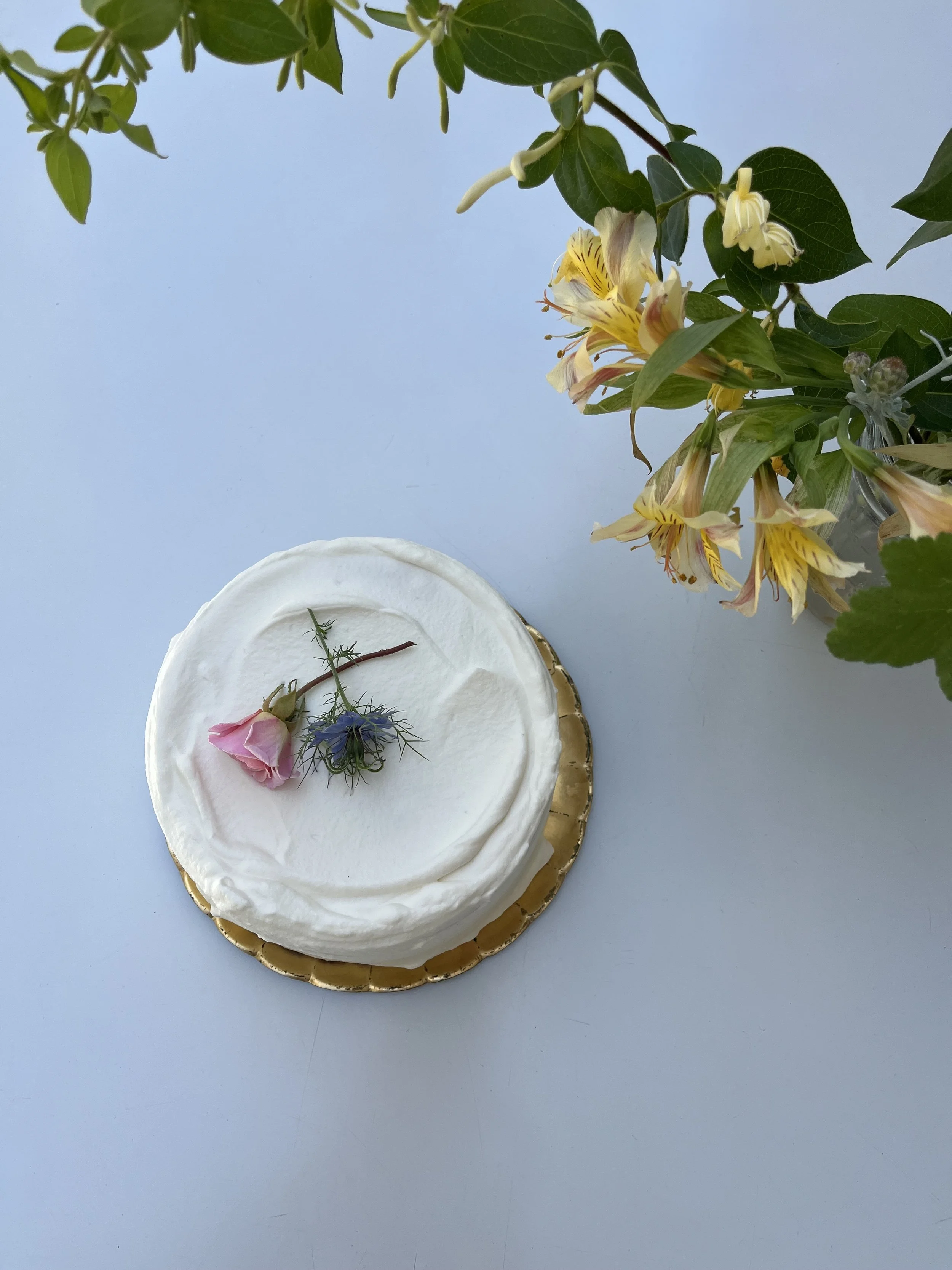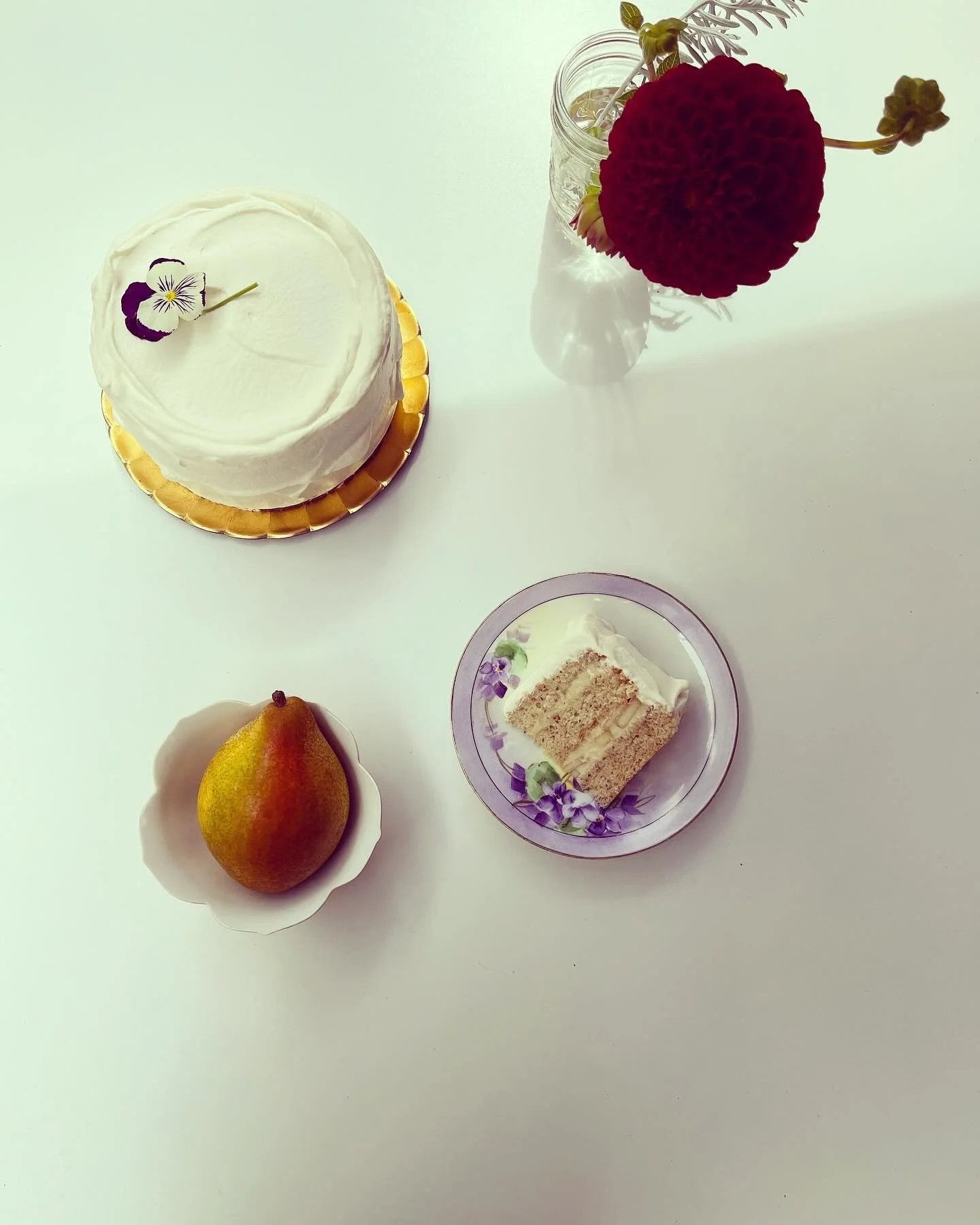 Pear Cake- Warren pears from Frog Hollow layered with Wild Tree Yunnan tea cream, walnut chiffon cake, and topped with tea buttercream