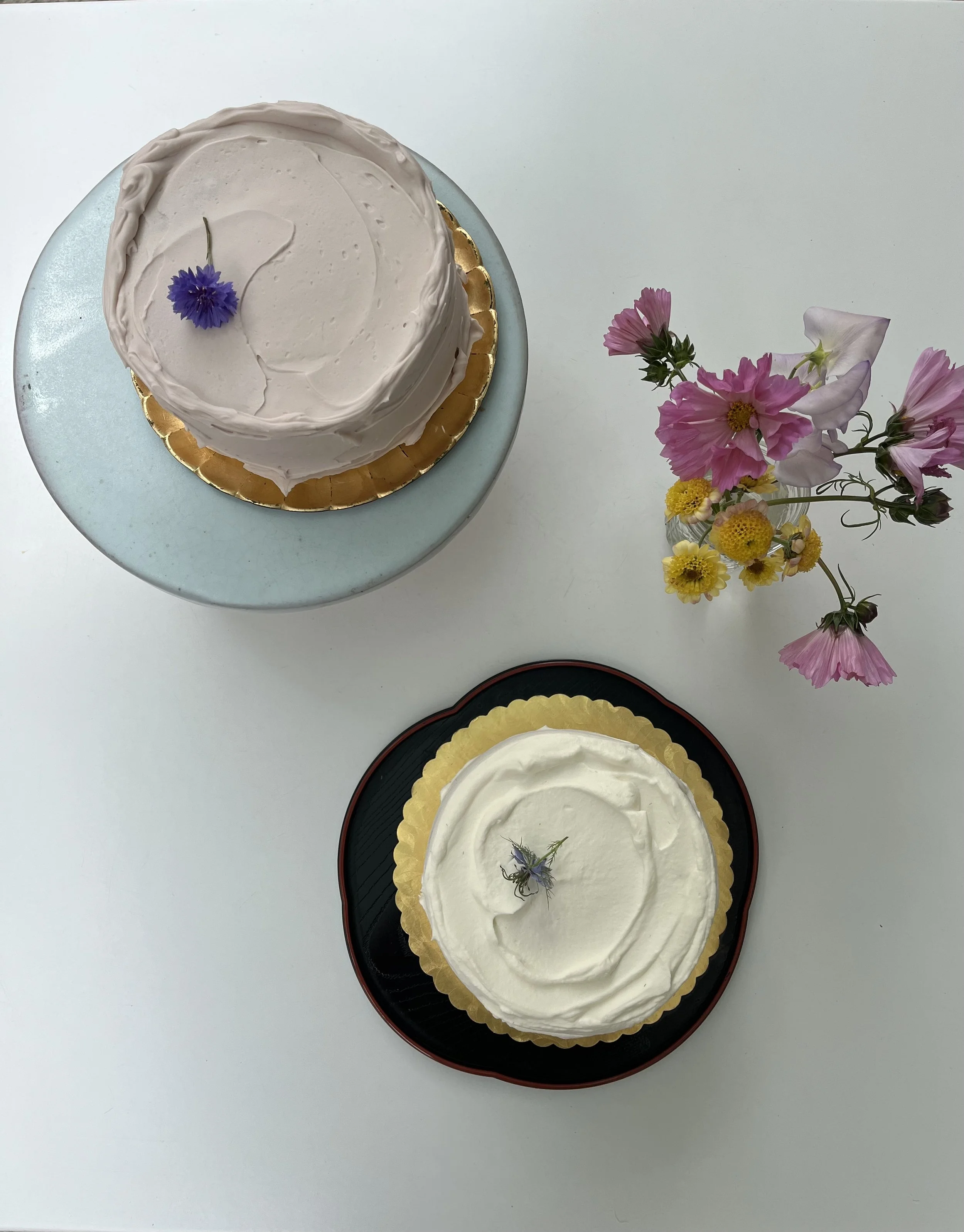 Santa Rosa Plum Cake- buckwheat chiffon cake layered with Santa Rosa Plum jam, noyau pastry cream, and plum buttercream