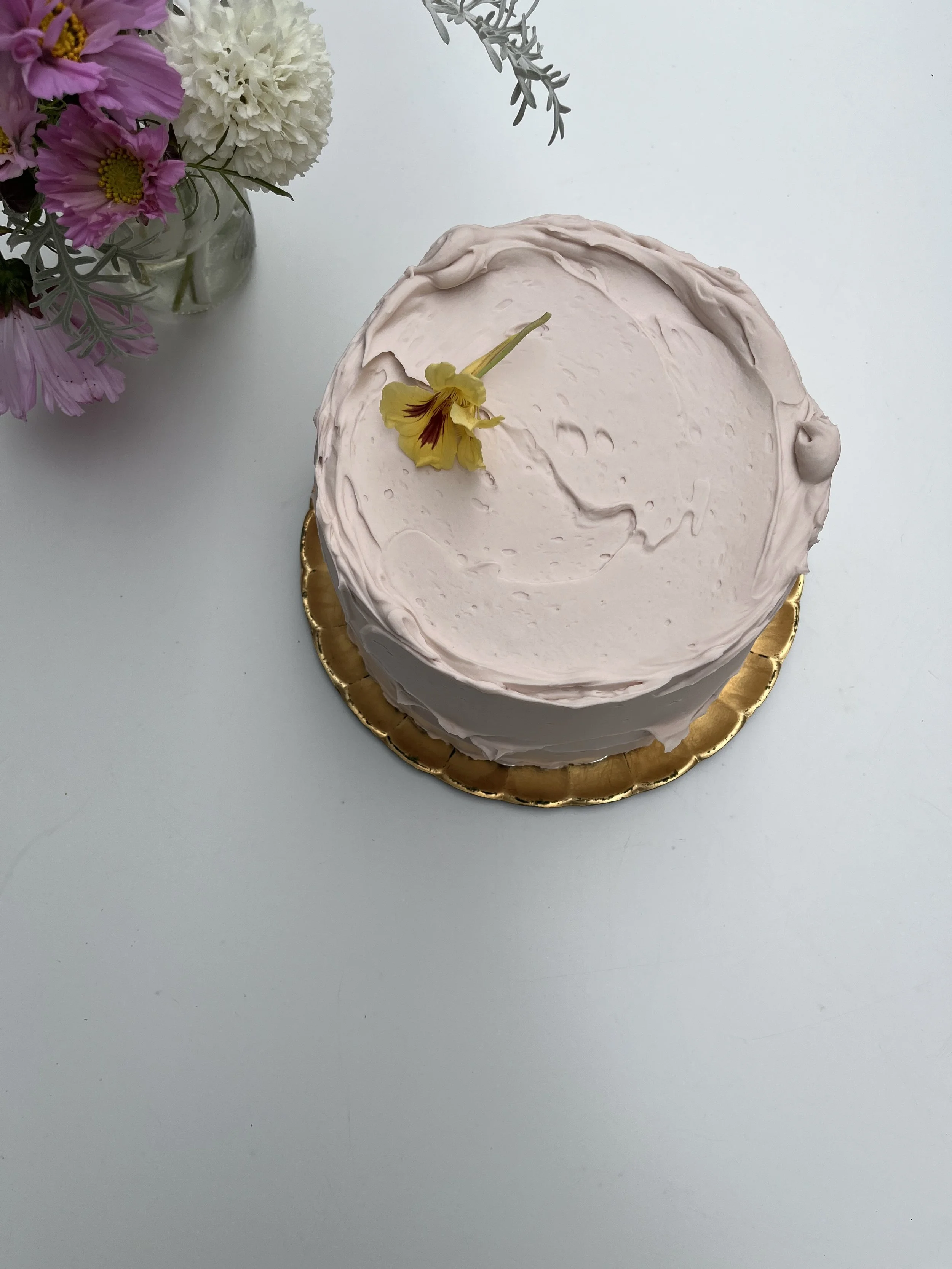 pluot cake- buckwheat chiffon, fig leaf pastry cream, plum jam and topped with whipped cream